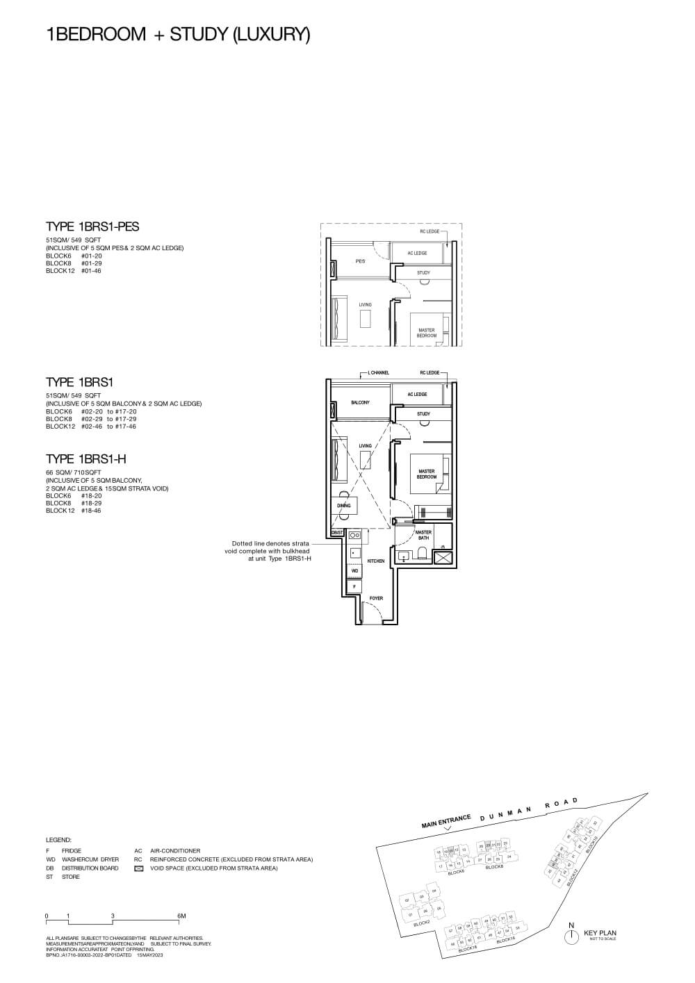 1 Bedroom + Study | 112 | 1BR S1-5 | 549 |