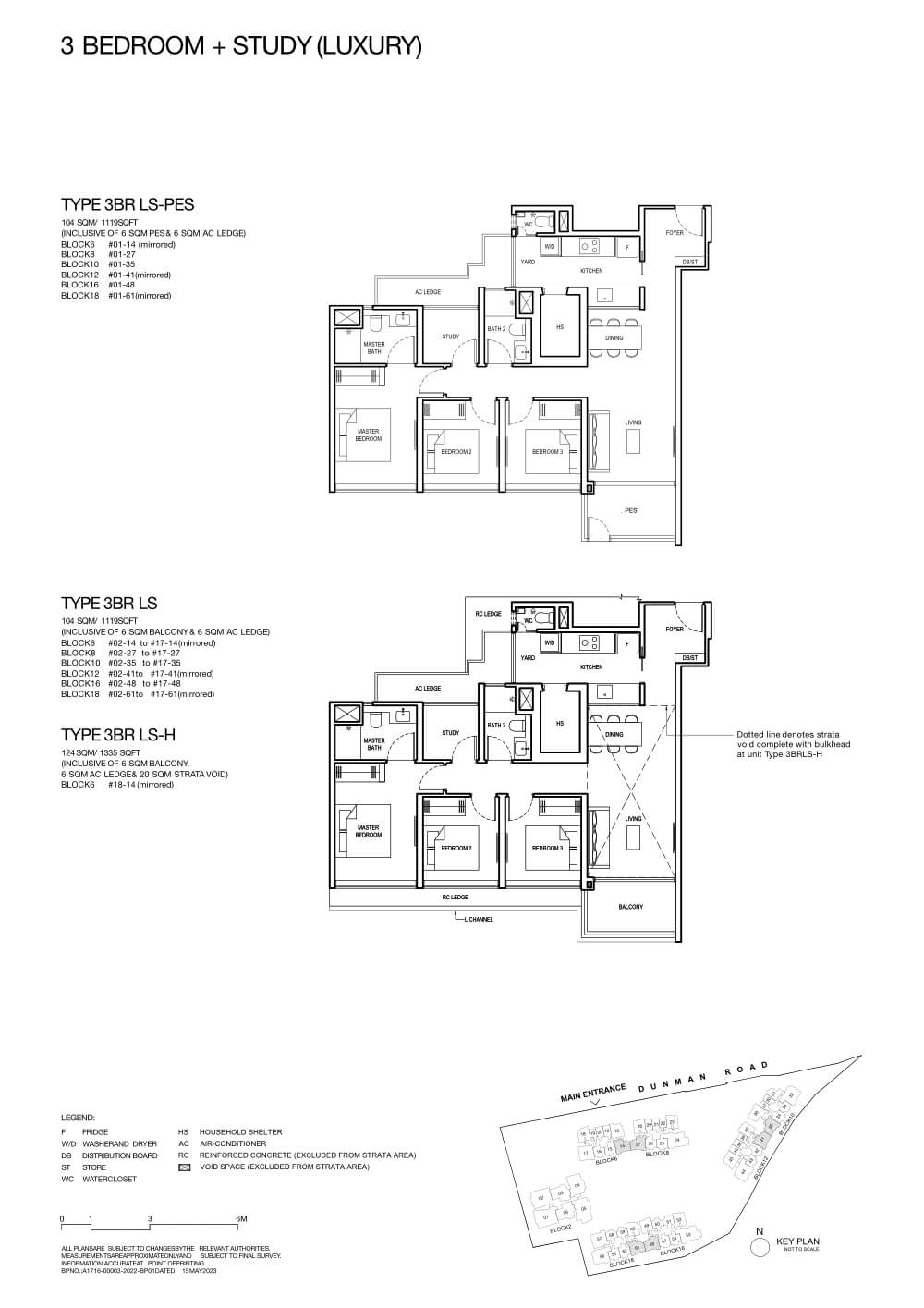 3 Bedroom + Study | 103 | 3BR LS | 1119 |