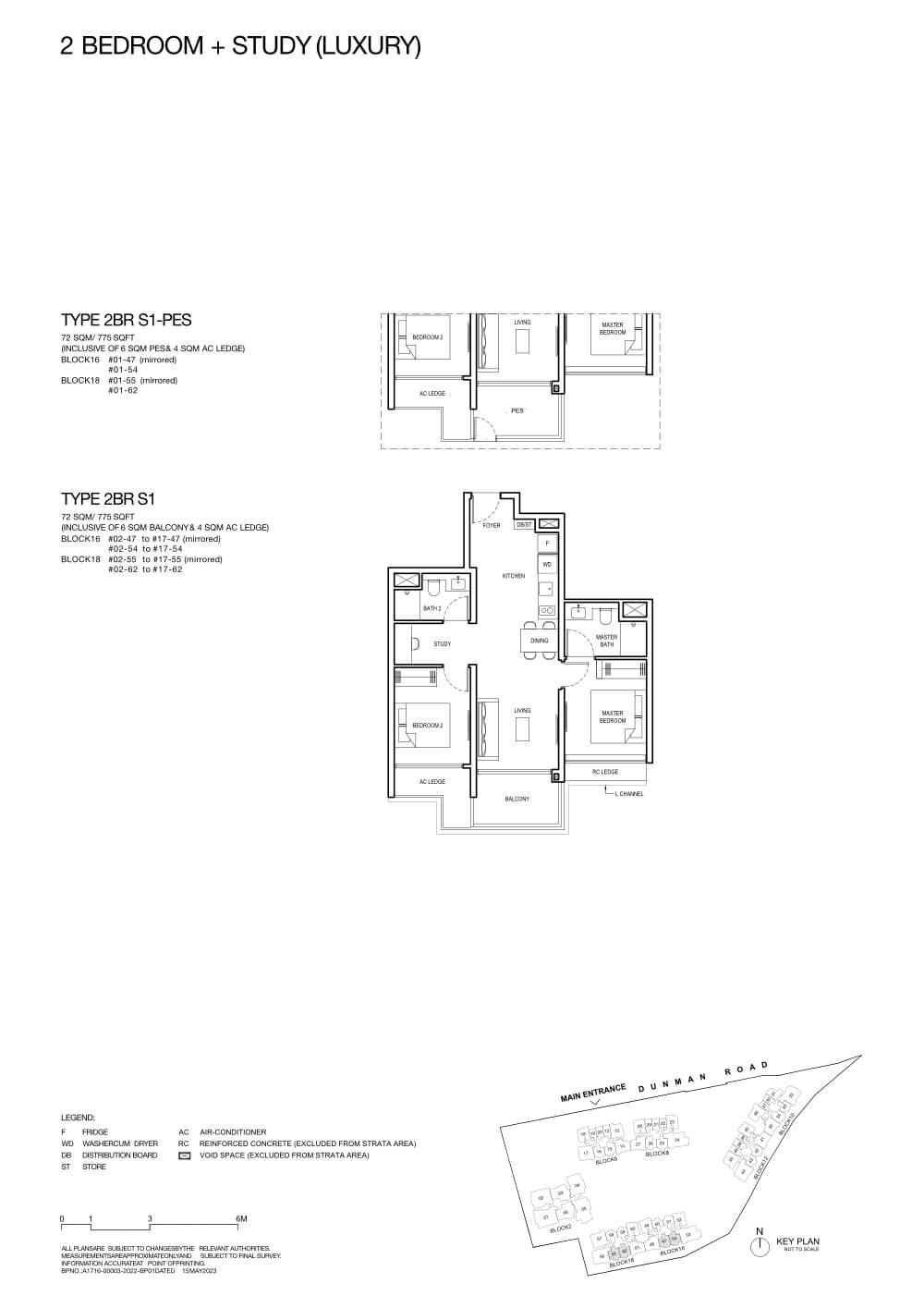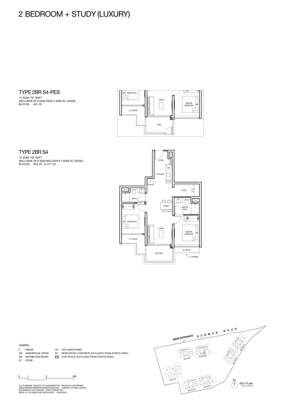 2 Bedroom + Study | 137 | 2BR S1-4 | 775 |